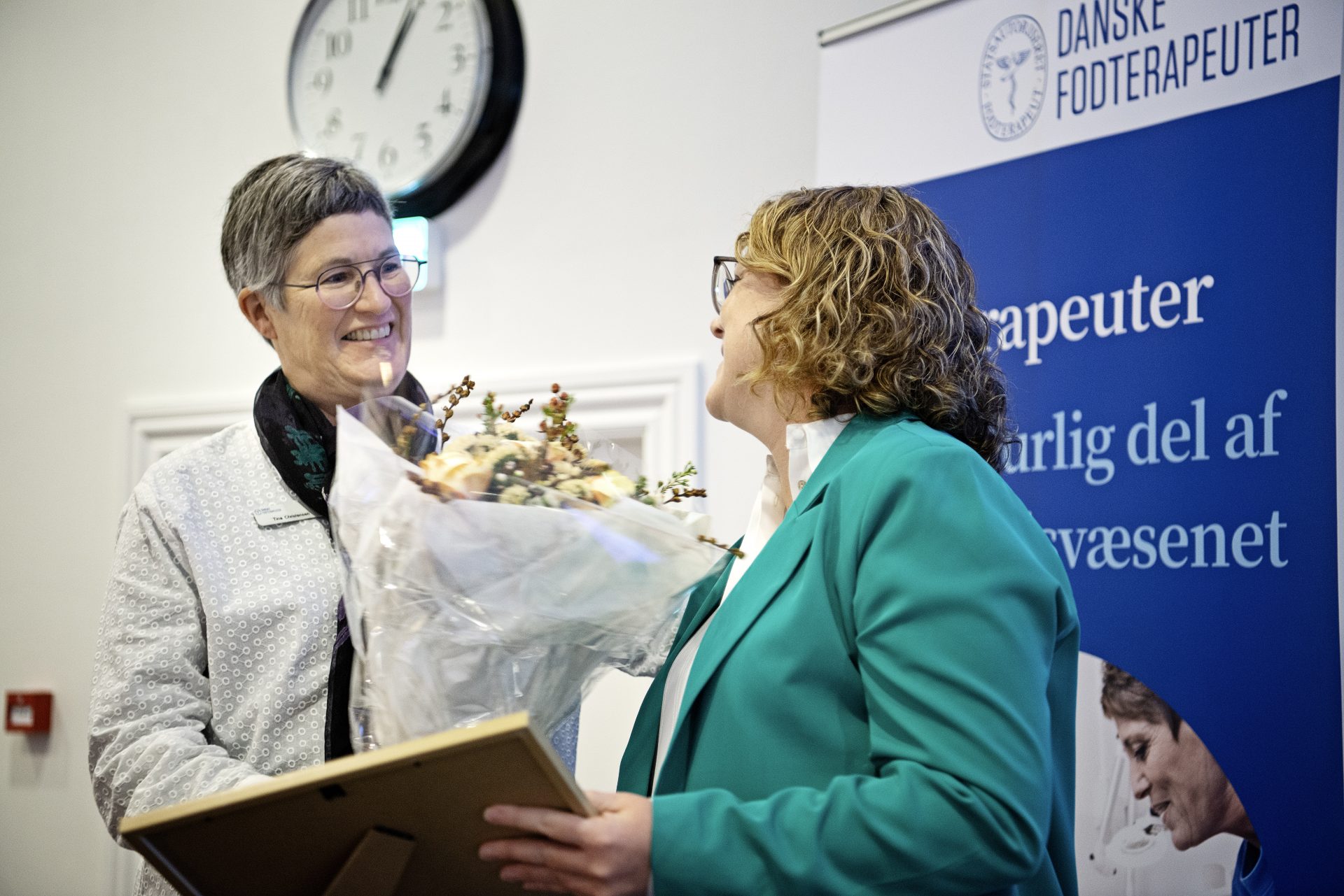Tina Christensen, afgående formand for Danske Fodterapeuter, har overrakt prisen til Charlotte Virkelyst Madsen på Danske Fodterapeuters generalforsamling med ordene: