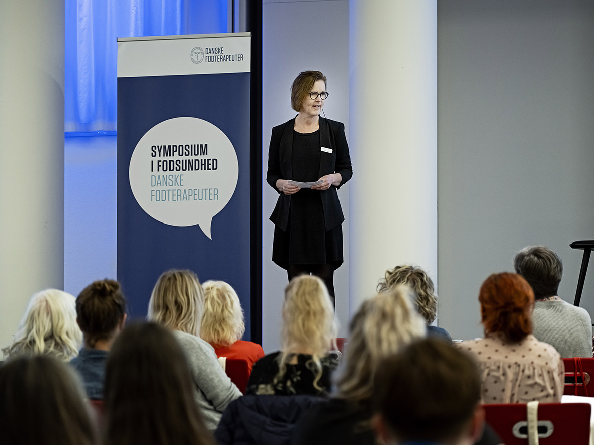 Formand Cille Holses stemme knækker kortvarigt over, da hun byder velkommen til de mange ansigter, som hun har glædet sig til at se. Det er hendes første kongres som formand og den første under navnet Symposium i fodsundhed.